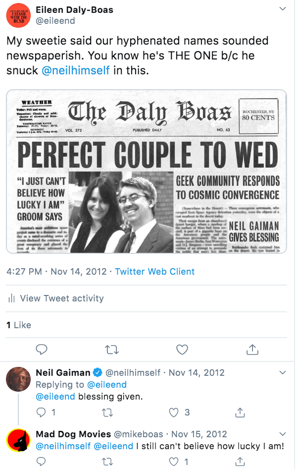 And, Neil has been really nice to me in the past, too. He twitter-blessed my wedding, and later, continued the blessings